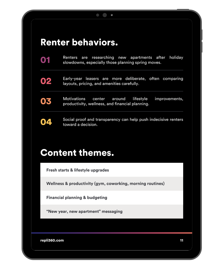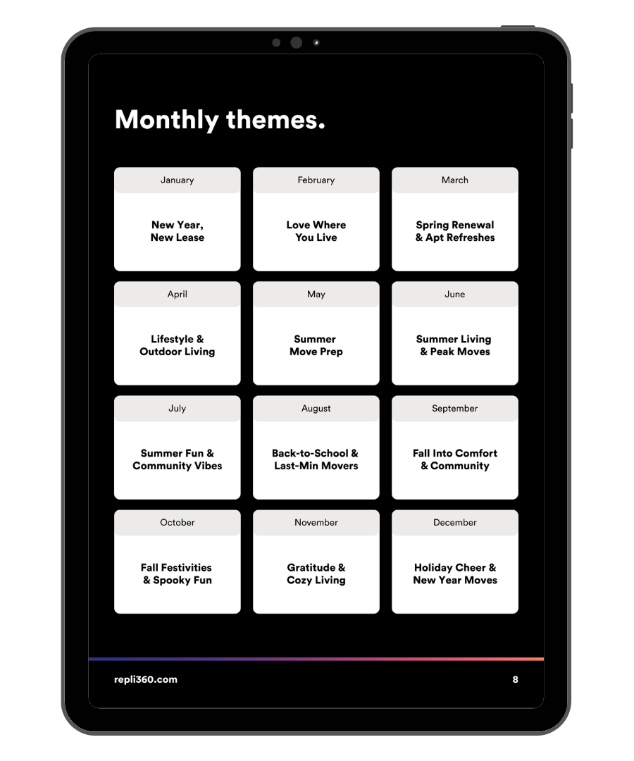 Inside, you’ll find monthly themes tied to real renter behavior, ad concepts that fit what renters are actually searching for, seasonal trends you can build campaigns around, and more . . .