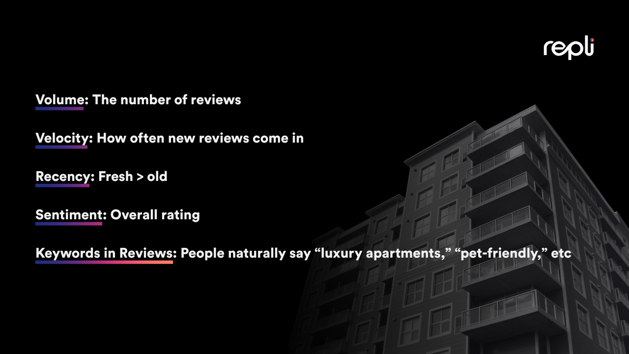 Reputation KPIs like review volume, recency, ratings, and responses aren’t just leasing metrics - they’re SEO signals.